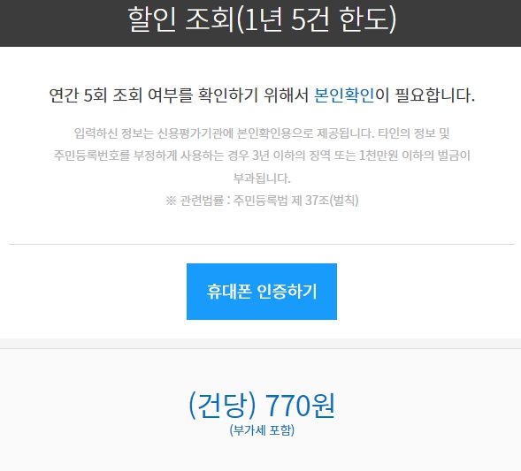 할인조회 (1년 5건까지) - 건당 770원